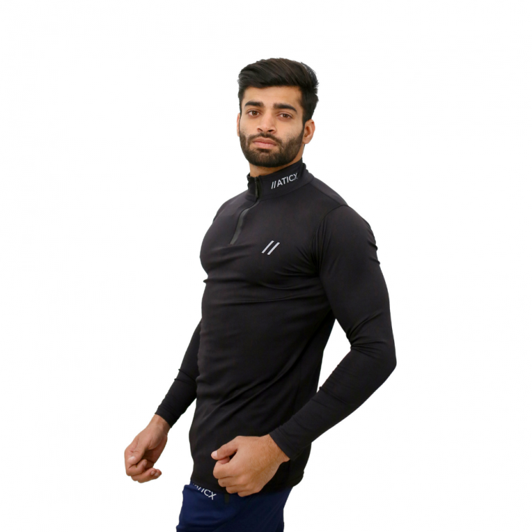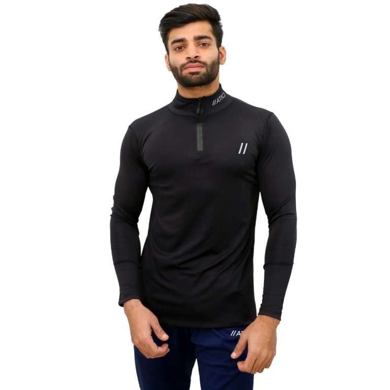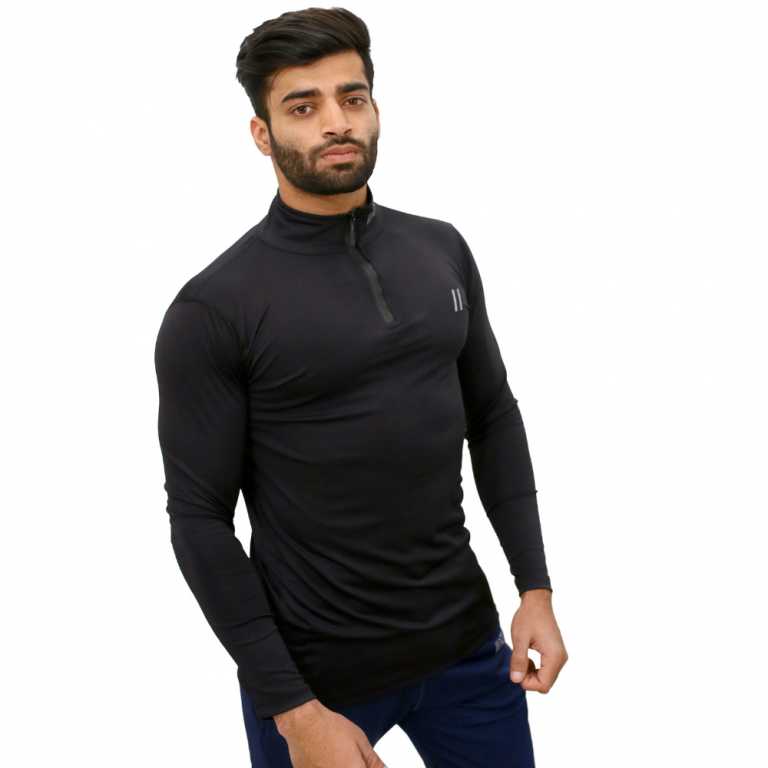 FlexDRY Training T-Shirt with Zip (Long Sleeve) | Jet Black